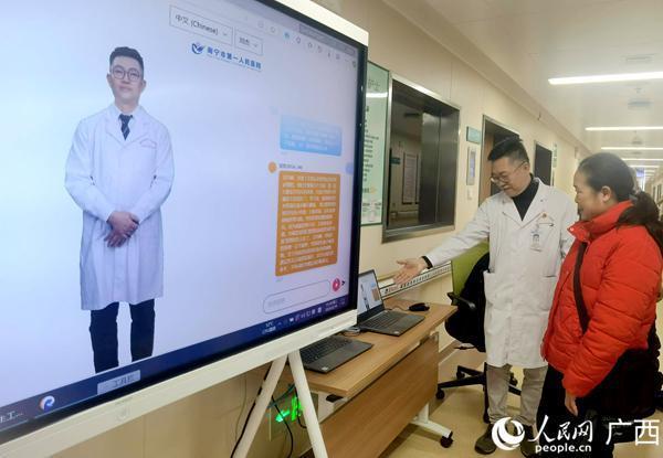 当天,一名心血管疾病患者来到南宁市第一人民医院复检时,首次体验了医院推出的数字人医生。